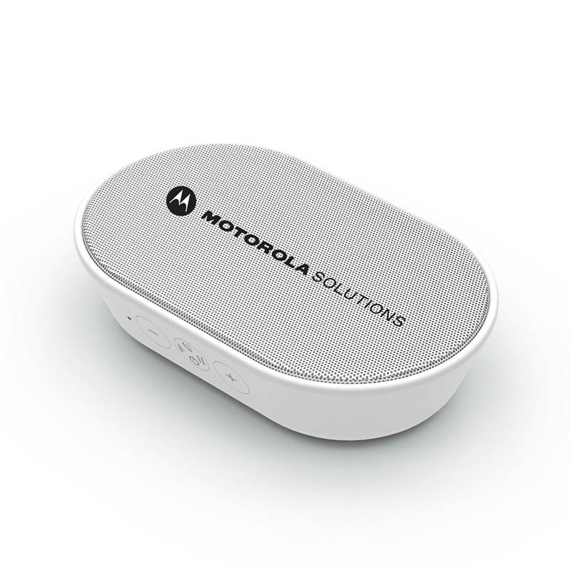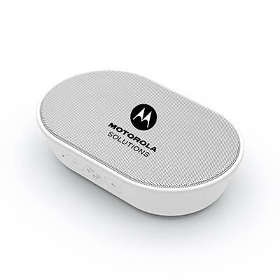 This is a wireless speaker using Bluetooth® wireless technology. Measuring just over 4 inches long, this is the perfect pocket-sized speaker guaranteed to make your brand the life of the party. Bluetooth® 5.0 with low-energy consumption. 30 ft Bluetooth® connectivity range. Passive radiator for bass boost. 5-watt driver for rich & powerful playback. Built-in microphone for handsfree calls. More than 6 hours of playtime. Easily accessible controls (play/pause, prev/next, volume control). Available in white.