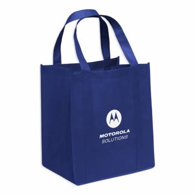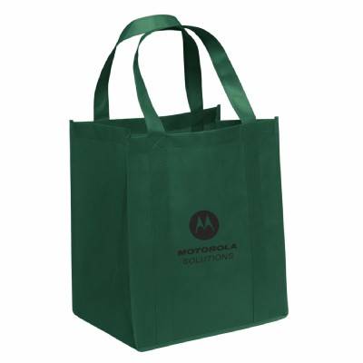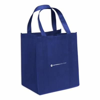 100 GSM premium non-woven polypropylene tote containing 20% post-industrial recycled content, with dual reinforced 20" handles and plastic bottom insert. Product Size: 13" x 10" x 15".
