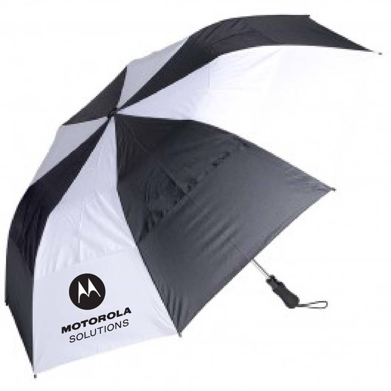 This must-have item features a 58" arc with an automatic open (manual close) and vent that allows wind to pass through helping to prevent it from turning inside out. It also has 8 sewn pongee panels with strong fiberglass ribs and iron shaft, a soft EVA foam handle, and a 4.5" wrist strap with matching pongee sleeve.