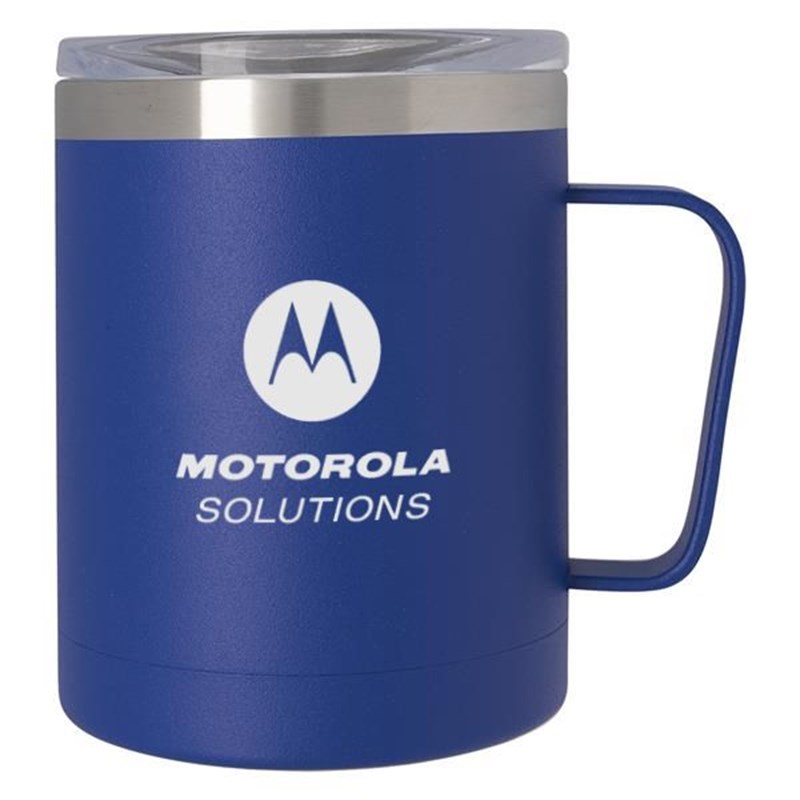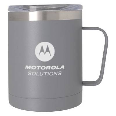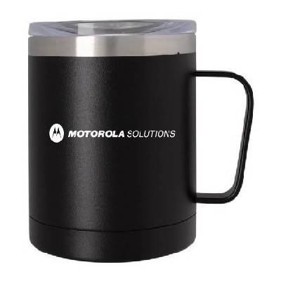 Holds up to 12 oz. of coffee or tea and features double wall construction with a stainless steel outer and inner. This also has a powder coated finish, vacuum insulation for hot or cold liquids, and a snap-on, sip-through lid. This BPA-free item meets FDA requirements and Hand wash recommended for proper care.
