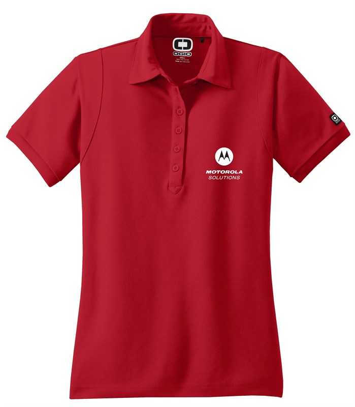 Impeccably designed for women everywhere, the Jewel has a contoured fit and streamlined style. 5-ounce, 100% poly with stay-cool wicking technology. Self-fabric collar. Rib knit cuffs. OGIO heat transfer label for tag-free comfort. 6-button placket with dyed-to-match OGIO buttons. OGIO badge on left sleeve. Features Motorola logo embroidered on left chest.