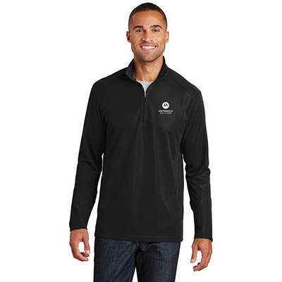 This budget-friendly, active-inspired pullover performs with moisture wicking and snag resistance. Easy to layer, the closed-hole pinpoint mesh adds subtle texture, while front and back seams streamline the look. Cadet collar dyed-to-match zipper, set-in sleeves and open cuffs and hem. Item features embroidered Motorola Solutions logo.