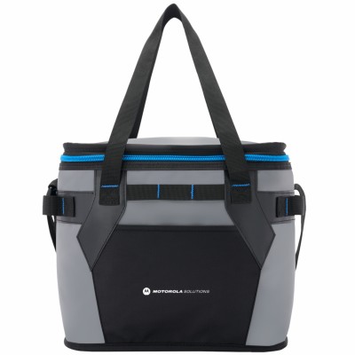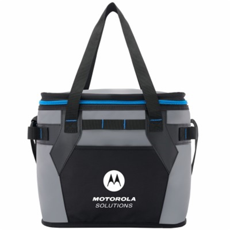 Durable top-loading 12 can waterproof cooler featuring extra thick foam insulation. Leak-resistant, heat-sealed liner. Wide opening, zippered top allows for quick accessibility. Adjustable shoulder strap.