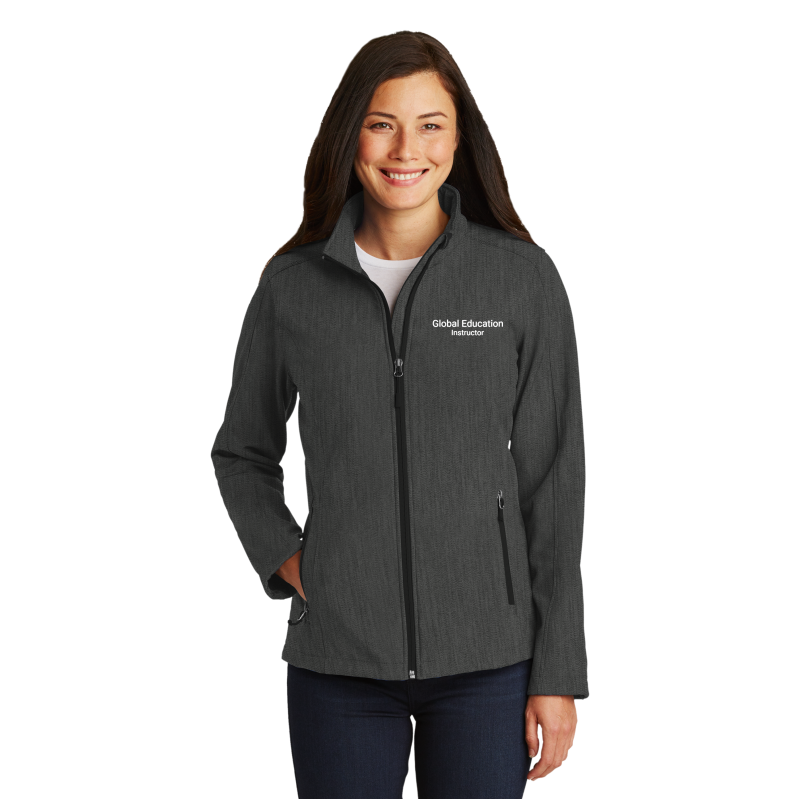 The Women's Port Authority Core Soft Shell Jacket is a versatile, value-packed outer layer designed for performance and style. Made with a 100% polyester woven shell bonded to a water-resistant film insert and lined with soft microfleece, this jacket keeps you comfortable while shedding wind and rain. With a 1000MM waterproof rating and 1000G/M breathability rating, it balances protection and ventilation. Features include a zip-through cadet collar with chin guard, reverse coil zippers, front zippered pockets, and open cuffs and hem.